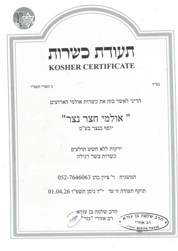 להורדת תעודת הכשרות לחצו כאן